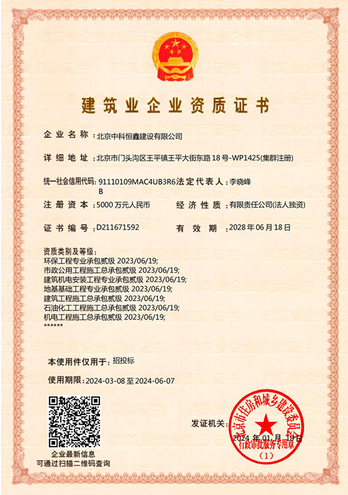 北京中科恒鑫建設有限公司資質