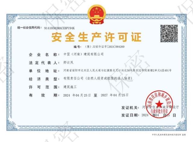 發證機關:安陽市住房和城鄉建設局發證日期:2024年06月13日